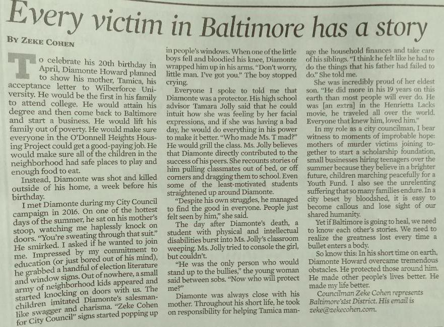 Lost to gun violence on April 21, 2018 in Baltimore, Maryland.